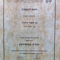 ביו־פידבק הוא טיפול מבוסס מדע המאפשר למטופל ללמוד לשלוט בתגובות פיזיולוגיות כמו דופק, נשימה פעילות מוחית ומתח שרירים. אסף גיטלר הוא יו"ר האגודה הישראלית לביו־פידבק ומדריך מוסמך בגישה זו, ומשלב אותה בטיפול בחרדה, כאב, מתח, ובעיות ויסות. הטיפול כולל מדידה בזמן אמת, הדרכה אישית ותרגול שליטה עצמית במצבי לחץ.