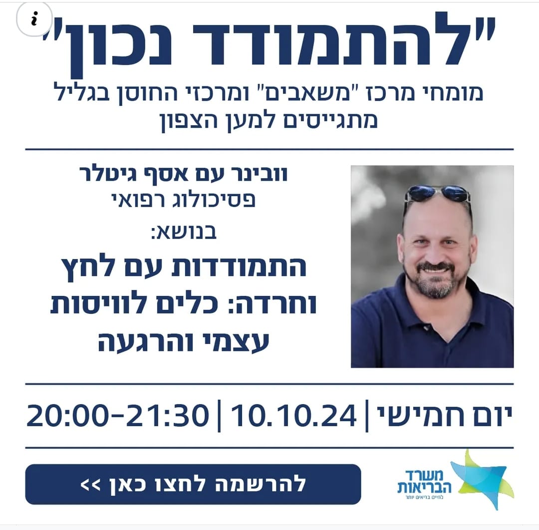 ניסיון נרחב בטיפול, בהדרכה ובפיתוח כלים מבוססים המאפשרים תהליך מדויק ומקצועי, ממפגש אישי ועד ליווי מערכתי.